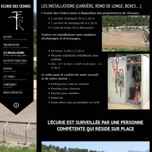 Site de présentation de l’écurie de propriétaires Ecurie des Cèdres Equitation, Dressage, Obstacle, Promenade Carrière d’obstacle, Carrière de dressage, Rond de longe, 50 Boxes Visitez le siteCatégorie Site vitrinePartager cette pageShare with FacebookShare with TwitterShare with Google+Share with PinterestShare with LinkedInNavigation de commentaireOnglet précédent Onglet précédent Le ParastoreOnglet suivantProjets similairesUn Carême pour la Terre